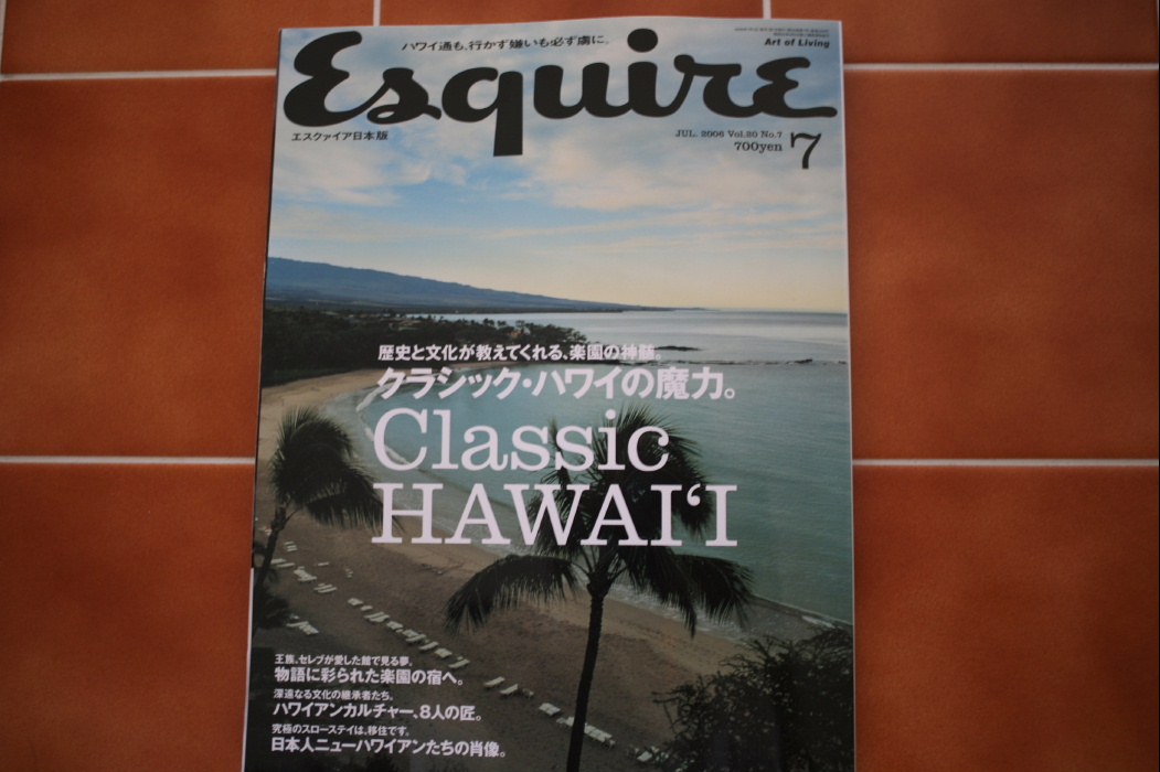 エスクァイア日本版の7月号はハワイ特集です。僕も取材に来ていただきました。P105に出ております。