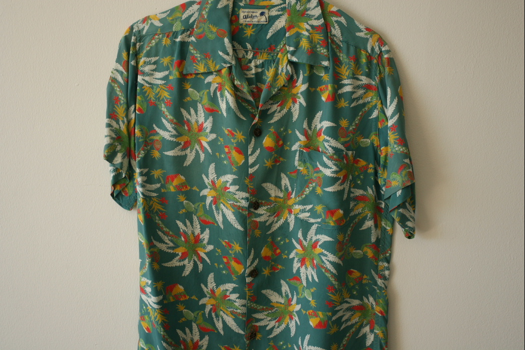 久しぶりにヴィンテージのアロハを紹介します。このタグはキング・スミスの「ALOHA」と書かれたレーベルです。これは1936年にチャンが登録商標を取った古いメーカーです。ここのメーカーの和柄、僕が2005年に復刻しました。当時、あまり和柄はなかったみたいです。このシャツもかなり古いものと想像できます。では皆さん気になるのは「おいくら?」となるのでしょうが、アメリカのオークションで35ドル(約4000円)というところでしょうか。あまりに安かったのでベーリーズのオーナーに「本物か?」と尋ねたところ本物とのこと。ラッキーと言うしかありません。やはり収集はまめに探すことです。MAHALU NUI!