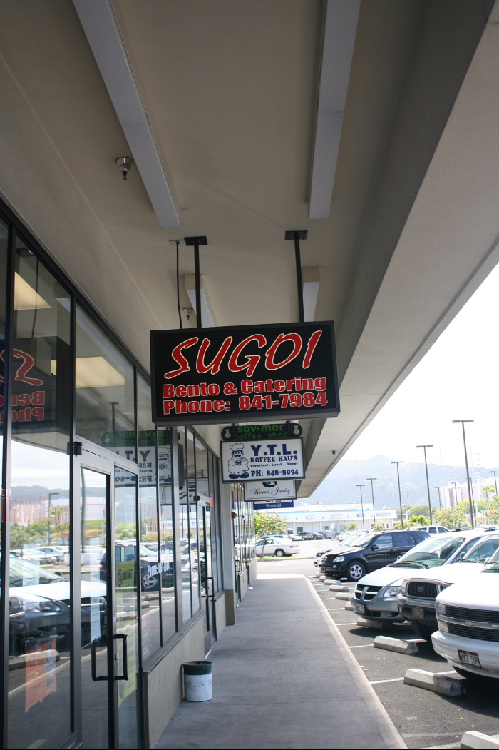 英語で書くと何やら変である。これはれっきとした食べ物屋の名前である。場所はワイキキよりちと離れるが、ロコに人気がある。デリング・ハムという通りにあり与平寿司に近い。最初に名前を聞いた時は、冗談で言っているのかと思って行ってみると本当だった。ここはもちこチキンが有名で、数あるもちこチキンの店の中でもトップクラスだ。少し甘めのチキンは柔らかく昔懐かしき食感がある。おもしろいのは店名の「SUGOI」もそうだが、「MOCHIKO」や「BENTO」など、日本の言葉が普通に使われていることである。そんな言葉を捜してみるのもおもしろいかもしれない。