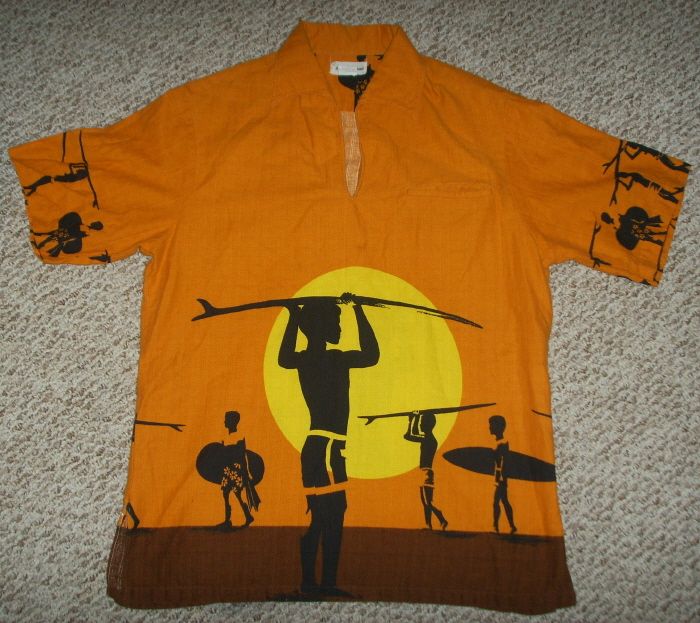 ブルース・ブラウンという監督が撮ったサーフィンドキュメンタリー映画。オーストラリアやアフリカ、ハワイなど転々としたロードムービー。この柄のアロハシャツがヴィンテージ市場で高値をつけている。これはコットンだと思うが、この年代で普通のハワイ柄だと10ドルから20ドル程度。しかしこれはオークションでは500ドル以上の値を付けている。ヴィンテージアロハシャツ市場は、レーヨンで1950年代前半物と相場は決まっていた。いよいよ1960年代物にも人気が拡大か?どちらにしてもアロハシャツの人気が高まることは良いことだ。