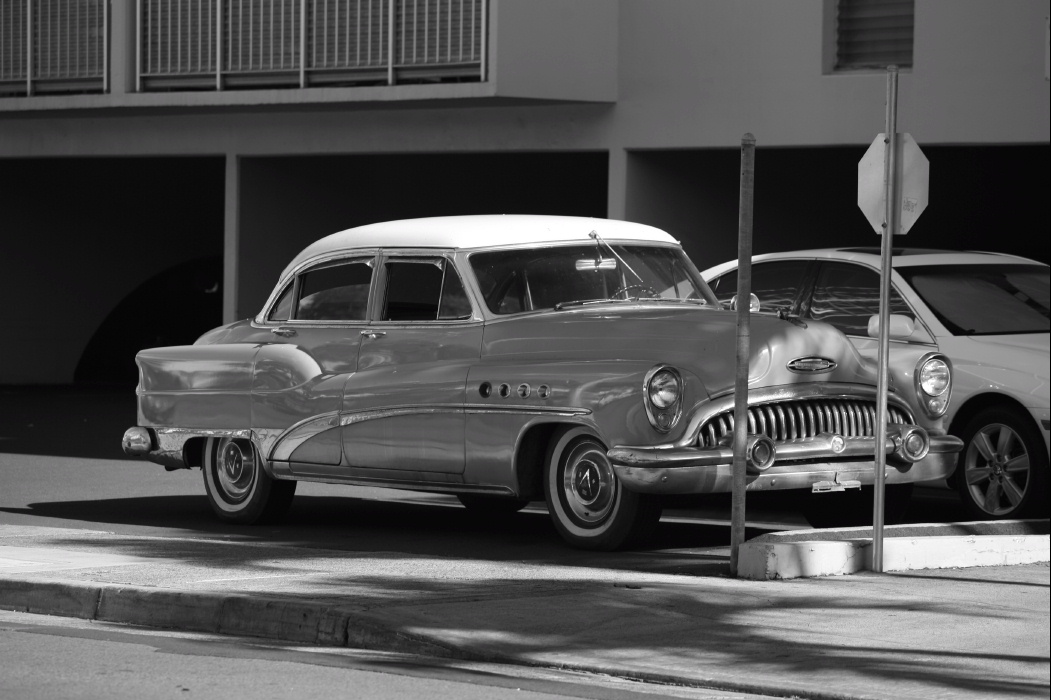 僕のアパートに近くにめちゃめちゃいけてるクラシックカーが停めてある。この車の前を通るたびこの頃のアメリカ良かったんだろうな〜〜と思う。BUICKという車だ。この頃はフランクシナトラやディーンマーティン、サミーデーヴィスJRなどが活躍していたであろう。近年話題のオーシャンズ11の本家版の方々である。しかしハワイは正直車はぼろい。中々この年式で良い状態のものは珍しい。アロハにしてもカメラにしても僕はどうしてこう古いものに惹かれるのだろうか?もちろん女性も古風な方が良いとまでは言わないが・・・・・・。