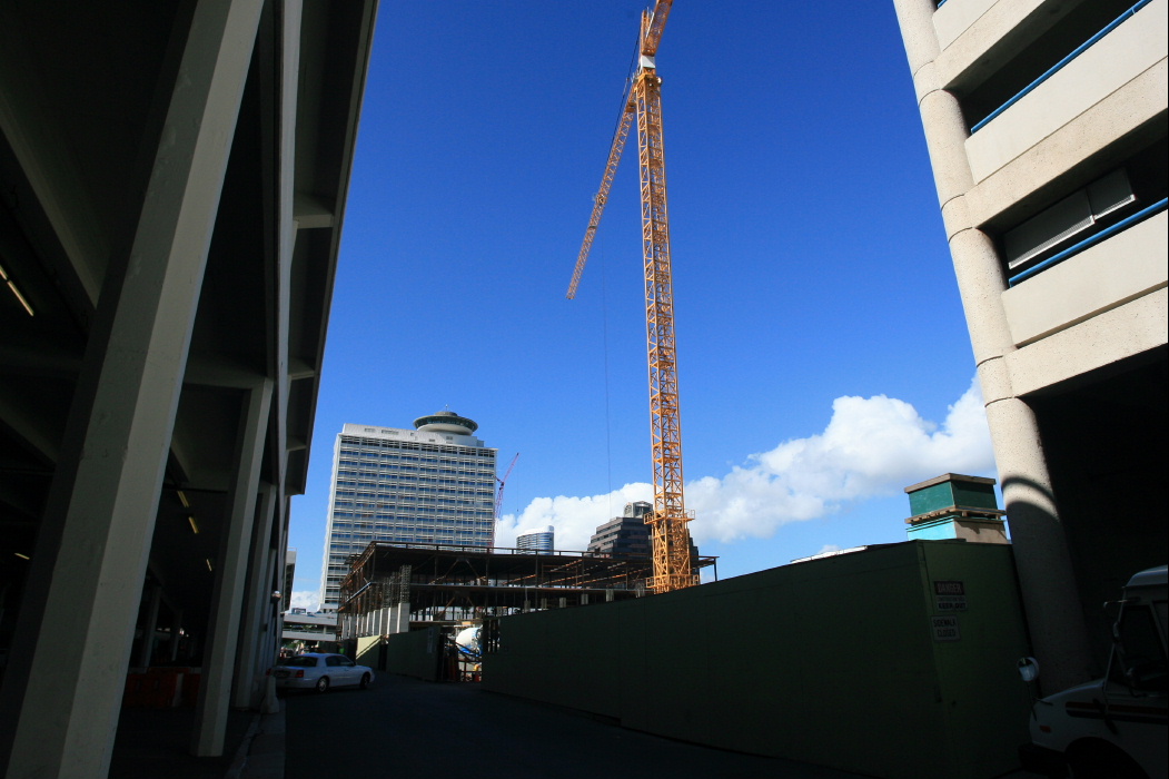 観光もピークに入り臨時便も出て昨日は遂に6000人を越えていた。僕が1984年に初めてホノルルに来た時にもアラモアナショッピングセンターに行った。とにかく巨大な印象だった。近年日本も大規模な跡地に巨大なショッピングモール建設が流行りだが、アラモアナなどはかなりのお手本になったはずだ。シカゴの「ザ・モール」LA近郊トーレンスの「デル・アモ」なども参考にしたと思う。しかしアラモアナの拡張はまだまだ続く。あれだけ大きいのにまだ広げている。来年もう(ほとんど今年)に完成予定。ケアモク(ウォルマート側)まで伸ばしている。この写真が最終段階にきた場所だ。バスを乗る人は見たことがあるかもしれない。ずっと売り上げは伸ばす為には飽きないという策が必要なのかも知れぬ・・・・・。みなさんも楽しいショッピングをして欲しい。明日天気が良ければ大晦日の夕陽をお見せしたいと思う。