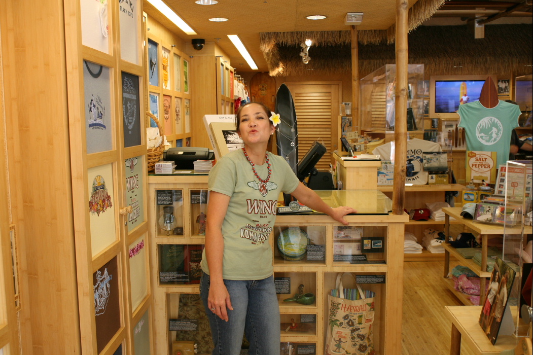 ベーリーズにいたMALUが新しい職場で働きだした。場所はアウトリガー・ビーチ・ウォークというワイキキの最新のショッピングエリア。ベーリーズでお世話になった人も多いと思う。彼女のマシンガントークで迷惑を受けた人はいないと思うが・・・・。いたらごめんなさい(笑)。お店の名前は「マリブシャツ」Tシャツ専門店だ。60年代、70年代のヴィンテージぽい雰囲気のお店。L・Aのマリブが本店だそうだ。サーフ系のグッズが充実している。一昨日オープニングセレモニーがあったばかりだ。彼女の今後の活躍に期待しよう!