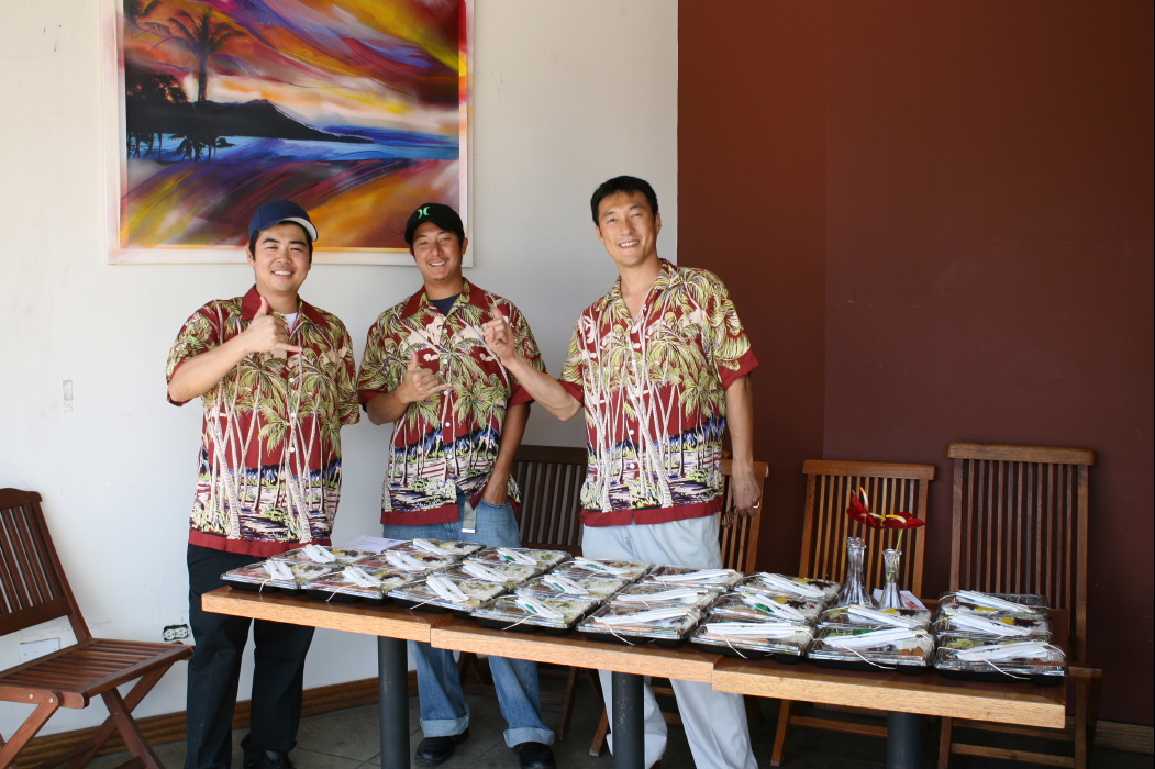 今年はアロハをユニフォームに!という依頼が2件あった。近年にクールビズ何とかで、随分日本も軽装になってきたようだ。それにしても閣僚のクール何とかはいつ見てもひどいね〜〜〜〜。これは茂蔵のユニフォームにしてもらったもの。ダイヤモンドヘッドが見える所に店があるからという理由でこれを選んだ。派手な柄だが、実に似合っている。クール何とか閣僚自体が悪いのか、シャツ自体が悪いのか、は定かではないが、もう少し改良した方が良いではなかろうか・・・・・。