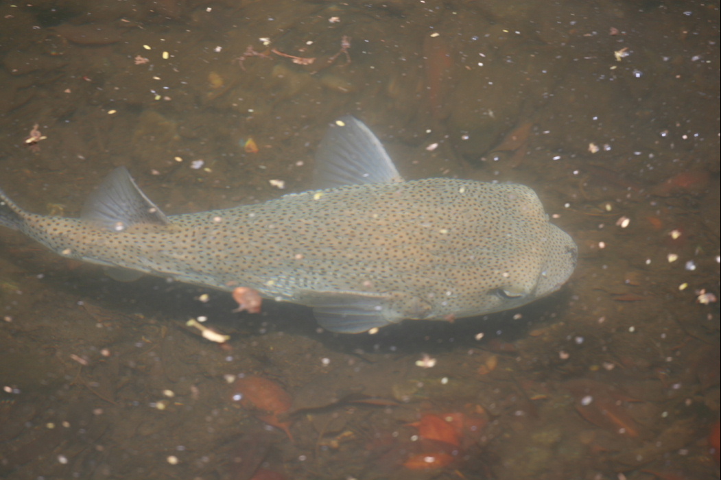 先日書いた「将軍」を遂に発見した。3年半住んで、けっこうアラワイ運河を走ったり、歩いた。しかしこの巨大な魚を見たことがなかった。この時も、日課のランニングの最中に目撃した。あわてて家に戻り、カメラを取りに帰る。運河に戻ると、またいなくなってしまった。一旦は落胆し、引き上げようかと思ったが、しゃくなので今一度端から端までいってみた。諦めかけて歩いていた中間地点で、遂に姿を現した。威風堂々と泳ぐ動作は、やはり「華麗なる一族の将軍」のようであった。優雅な泳ぎにつられ、僕は2キロほどついていってしまった。ちなみにドラマを見たことがない人に説明するが、TBS開局55周年番組で巨大な鯉が出てくるのである。とそれに関連はないが、昨日からハワイの「KIKU」という日本語放送で、この「華麗なる一族」がスタートした。実に奇遇である。カメラマンの「たかちゃん」、僕のHPチェックしていないで、この魚の名前教えて欲しい!