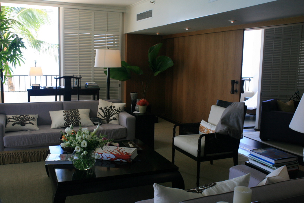 この写真はどこだかわかる方がいるだろうか?僕も初めて入った場所である。ここはワイキキ「ハレクラニホテル」のスイートルーム。その中でも一番の部類。無論僕が泊まった訳ではない。いつもお世話になっている方が、家族でお泊りになった。応接室、寝室が3つ。巨大なリビングルーム。お馴染みのコーナーでほとんどの位置から海が見える。ミニバーは飲み放題で、専用の執事が常駐する。贅の至りである。自分が色々なところに宿泊して、ミニバーは高いよな〜〜なんて考えいたことがはずかしくなる。この部屋を見るとかえって自己嫌悪に陥りそうになる。宿泊された家族に笑顔がない時はない。心も体も、最高のコンディションのように見えることは疑いもない。あえてここでお値段の話をするのは無粋であろう。ご想像におまかせするとしよう。メールをいただいた方には、お教えしたいと思い。彼らは空間を買った。僕もそうなりたいものだ。