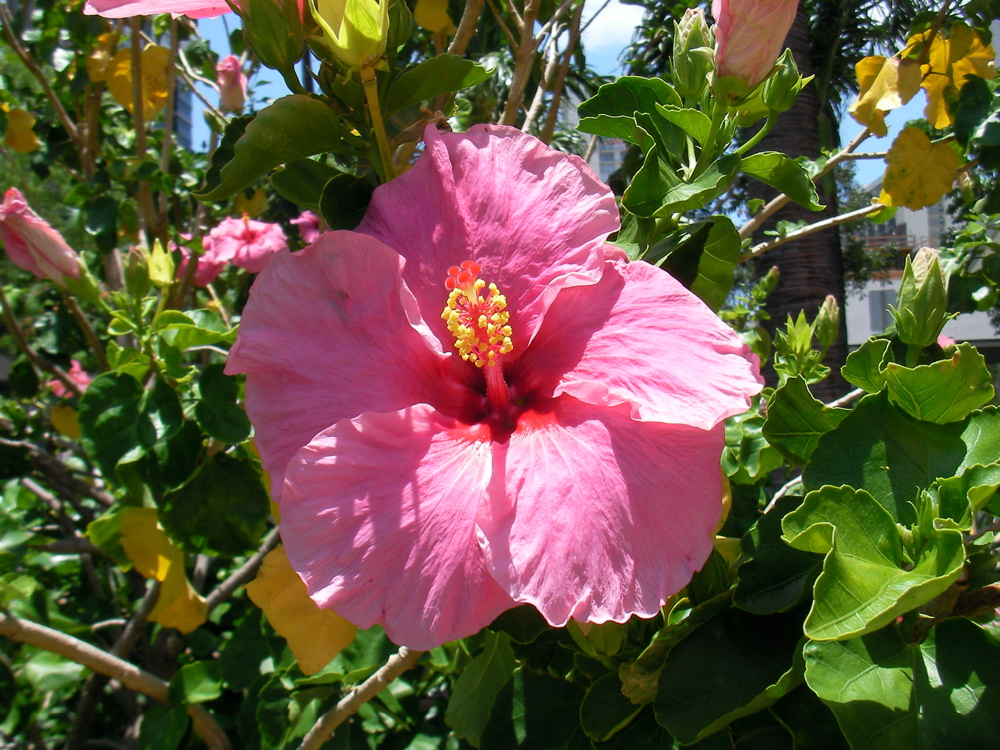 愛用のカメラがご機嫌ななめで、初めてサーヴィスに出した。カメラがなくなると、急に不便になった。このブログの写真は、ほとんどがそのカメラによるものだったのである。いつ修理があがるかわからない為、「しょぼい」カメラで町に出た。相変わらず撮りたいものはたくさんあり、それを収め帰ってきた。それが、大したカメラでもないのに写りが良い。と、云うことは今までのカメラはカメラが良かっただけで腕は?という疑問と共に、安いカメラでもなかなかいい感じと云うのは、腕が….。あとは皆様に評価していただこう。原色の花、やはりいい。
