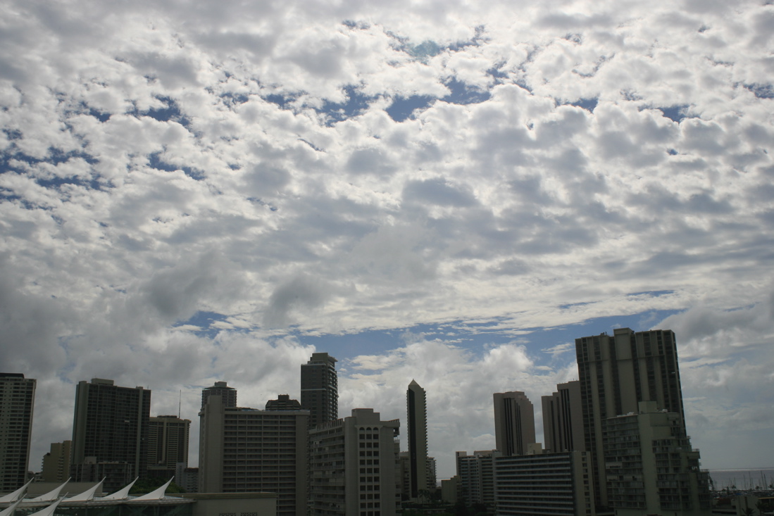 ワイキキは流石である。何が流石か。ここ数日、ハワイは非常に天気が悪い。嵐が来ているのだ。一昨日も久々に終日、ワイキキが雨であった。ニュースも2006年3月の異常気象の時と、かなり似ているとアナウンスしていた。昨日もあまり良くない予報であったが、雨は降らず、この写真のように、時々晴れ間が見えた。終日雨のワイキキを云うのは、年に数回。この気候でなければ、世界で最も有名な観光地とはならなかったであろう。VIVA WAIKIKI!
