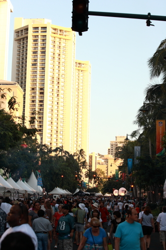 この前の続きを書く。29日の土曜日、夕方ワイキキに出た。 この日はハワイで開催される、アメリカンフットボールの オールスターゲームの前夜祭で、ワイキキをホコテンにした。 通常のこのプロボールは、スーパーボウルの翌週にホノルルでおこなっていた。 昨年からマンネリを打破しようと、マイアミでスーパーボウルの前週に開催した。 ひとつには開催地を長い間ハワイ一箇所でやっていたので、変化をつける意味合い。 もうひとつはスーパーボウルの翌週になると、 全米のフットボールファンの関心は薄れるので、前の週はどうだ?と開催した。 前週にもってきたのは成功した。 しかし開催地はやはり、ハワイがいいという意見が出た。 そして初めてスーパーボウルの前週に、ホノルルで開催することになった。 その前夜祭。かなり盛り上がっていた。 オフィシャルグッズの店から、ハンバーガー、かき氷の店まで大盛況であった。 五つのステージではそれぞれの余興があり、 夏の神社の境内をひとまわりする「それ」にどこか似ていた。 気がついたことが、いくつかあった。 まずは黒人が異常に多かった。通常のワイキキの10倍はいただろうか。 それと白人も多いのだが、皆裕福な人種であった。 旅費も本土から家族五人で来たら、安くない。 おまけにプロボールのチケットもかなり高額である。 簡単にいうと、皆金持ちが集合したということである。 もうひとつは過去の名プレーヤーや、ハワイ出身のプレーヤーがステージに上がった。 共通しているのは、実に「品」があること。 そして自分の許す限り、ファンにサインをしていたこと。 驚くくらいにフレンドリーで、真面目でコマ目にやっていた。 スーパースターとは、こういう人達をいうのかと間近で勉強になった。 インタビューも、他人のことはほとんど語らない。 翌週のスーパースターの結果も、敢えて回答しない。 皆最後にこの目の前のファンに一言という問に、 「両親や家族を大切にしな。また親は子を褒めて、楽しくやって欲しい。 そうすれば必ず伸びていく」と。 いま現在、世界中にいる無能な政治家より遥かにキレがあり、 温かさもあり、共感性もある見事なやり取りであった。 最後に思ったのは、群衆が騒ぎ、ハンバーガーやホットドッグの煙が上がり、 上から見ただけでは、エジプトの暴動と見た目は変わらないと思った。 決定的に違っているのは平和なハワイで、「娯楽」に集まった幸せな大衆ということだ。 選手たちの意見は「プロボールは選手達のご褒美だ。 家族も連れて来られる、皆の憧れの地ハワイで、今後も開催して欲しい」 と有名選手が声明を出した。 有り難いことである。 この経済効果は、ホノルルには追い風になるのは間違いない。 毎年開催できるようにこちら現地サイドも、努力せねばならない。