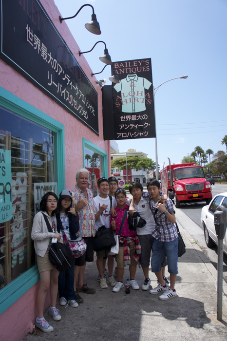 以前も書いたが、また今年も中学生がやってきた。修学旅行である。この学校は、1年前から全員が家庭科でアロハシャツを作成し、ハワイに来て色々な課外授業に参加する。ハナウマベイで、海洋学を学ぶ者。ハワイアンキルト教室で、キルトを縫う者。そして僕が6年続けている、アロハシャツの歴史と実際に作っていく工程を見せる学習である。自分が中学生の頃は、兎に角「学習」が苦手であったので、おこがましいといえば、かなりおこがましいのである。4時間半でベーリーズアンティークに行き、実際古いヴィンテージのアロハを見て、その後近くのレインボードライブインでランチ、最後に縫製工場に行き、裁断から縫製の様子を見てもらい、僕が解説していった。今回は久しぶりに男子学生が多く、質問もかなりユニークであった。いつも思うが、ここの学生の受け答えや話し方、とても中学生とは思えぬしっかりしたものである。案内する度に、これからの日本は大丈夫だと確信する。最後に余談であるが、1番初め6年前に案内した中学生は、21歳の大学生となった。先日メールが来た。「中国の大学に留学します」と。もう成人式を終え、国際的な場に進出している。僕もまだまだ負けていられない…………と思うのある。