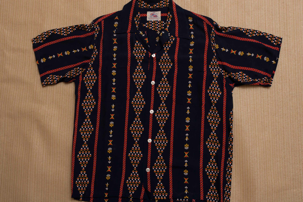 ユナイテッドアローズと、初年度にコラボした柄の、オリジナルヴィンテージが売れた。購入していったのは、シリコンバレーに住むアメリカ人。昔はこういう柄を、基本に蒐集していた。その当時、有名柄と比較すると手に入りやすい方であった。でも外野は「これはアロハ?」、「また骨董品ばかりにお金を使って」などとも云われた。確かに好きな人以外はどうでも良い物である。しかし今店に訪れてくれるヴィンテージ好きは、「いや〜、渋いですね〜」と云ってくれる。20年以上の蒐集癖が、やっと一部の方に共感していただけるようになった。アメリカ人も日本人も、「かっこいい」という感覚は共通しているようで、妙に安心した。