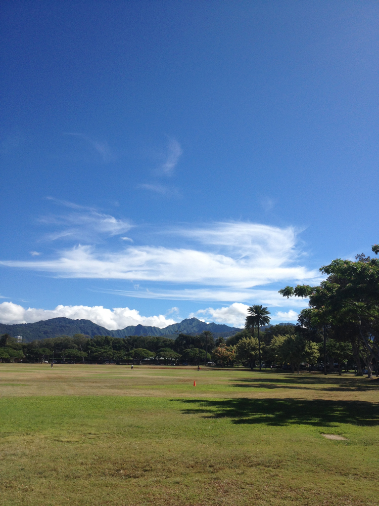 時々、老体にむち打ち走っている。と、たまに見慣れた景色の中に、見慣れぬ景色を発見することもある。で、写真の景色。カピオラニ・パークから見たコオラウ山脈。何故気になったかというとこの角度、ビルがほとんど見えない。昔のワイキキはこんな感じかな〜と想像させるのである。正確に云うとワイキキは昔湿地帯だったので、蛙などが多かったようだ。だからこんな感じだったのかな〜はちと違うか。あとわずか角度を左に変えるとホテル、コンドミニアム群になる。自分の人生も見方を変える必要がある時が、あるやもしれぬ。まあぼちぼち考えるとするか………。