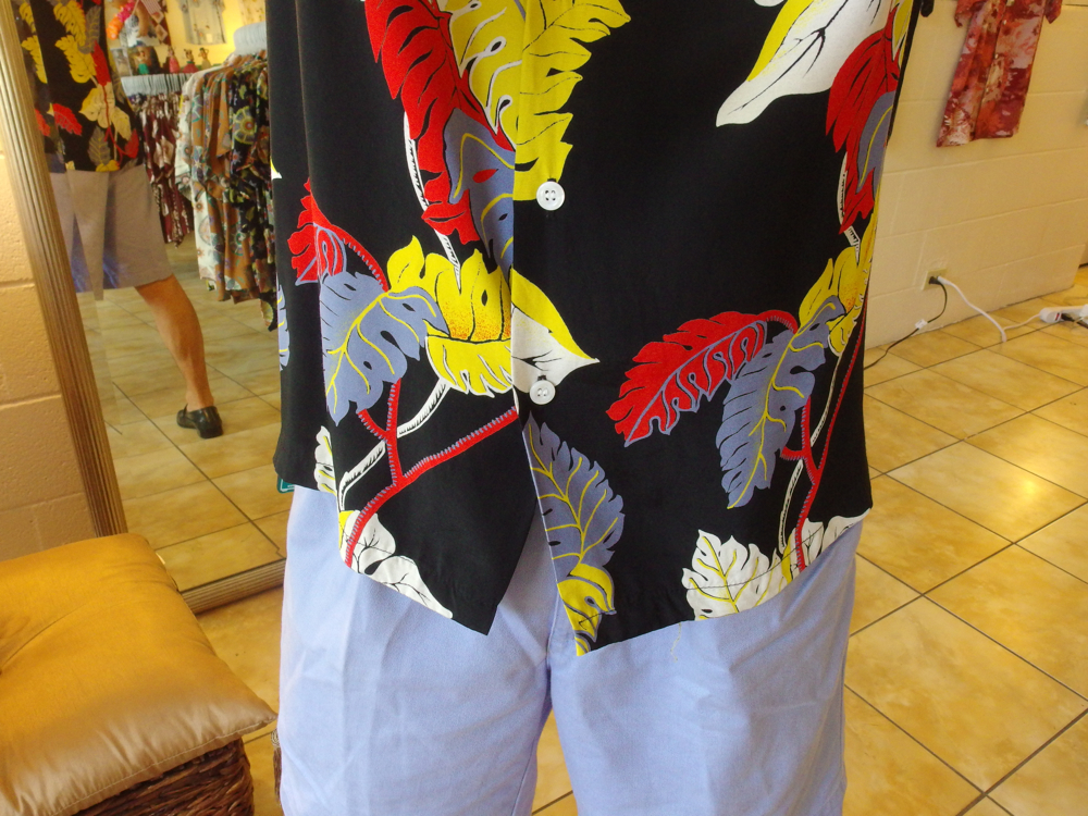 何か「克也さん」みたいな、問いかけである。実際アロハシャツを買ったはいいが、どうやって着るの?と、今更聞くに聞けないところもあると思う。柄物であるからして、ボトムは無地にすれば、まず問題がない。全くウワモノを選ばない、カーキのチノがベストであるが、写真のようにアロハシャツの柄の色を、パンツの色に合わせるのは上級者だけでなく初心者でもいける。結婚式で教会に行く場合は、長いパンツが良いが、パーティーだけの招待なら、写真のわしの後ろ姿のように、短パンに革靴も全然ありである。まあ兎にも角にも「自信」を持って着ることが重要かと。