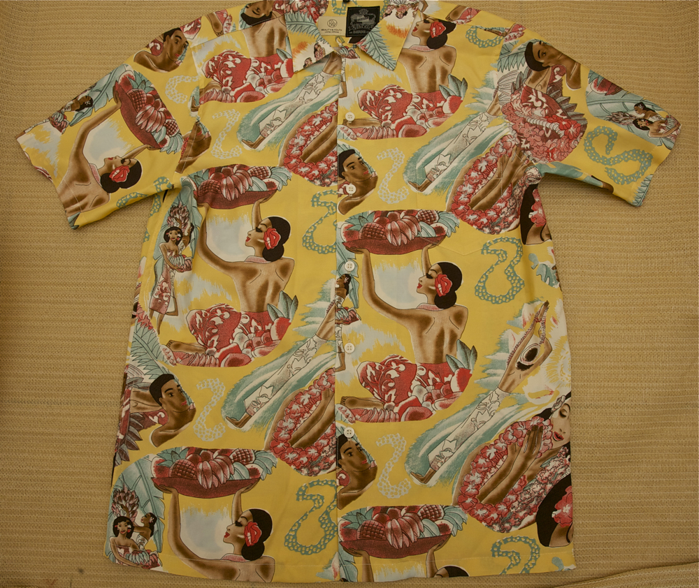 もう日本はクリスマスが終ってしまったか。ハワイは今日が25日。アラモアナショッピングセンターをはじめ、ほとんどの店が休み。ワイキキは、かろうじてやっているらしい。昔LAに住んでいたころは、ショッピングセンターもやっていたような気がするが、大規模なアラモアナショッピングセンターが休みなのは意外である。もちろんクリスマスは、アメリカ人に取り大切というのはわかるが……。さて2014年モデルの続きである。このフランクマッキントッシュの別配色。これは昔のヴィンテージアロハシャツではない色を、僕が勝手に付けた。こんな色が現代と、ユナイテッドアローズに合うだろうと。黄色のマッキントッシュ柄は、ぱっと明るくなり非常に良い感じが出た。これも金運アップ色である(笑)。渋くもあり、可愛くもある。それにしてもこの柄の、ハワイアンの女性優雅だなぁ〜。もうあと何回ブログ更新出来るかわからないが、やれるだけやってみよう。