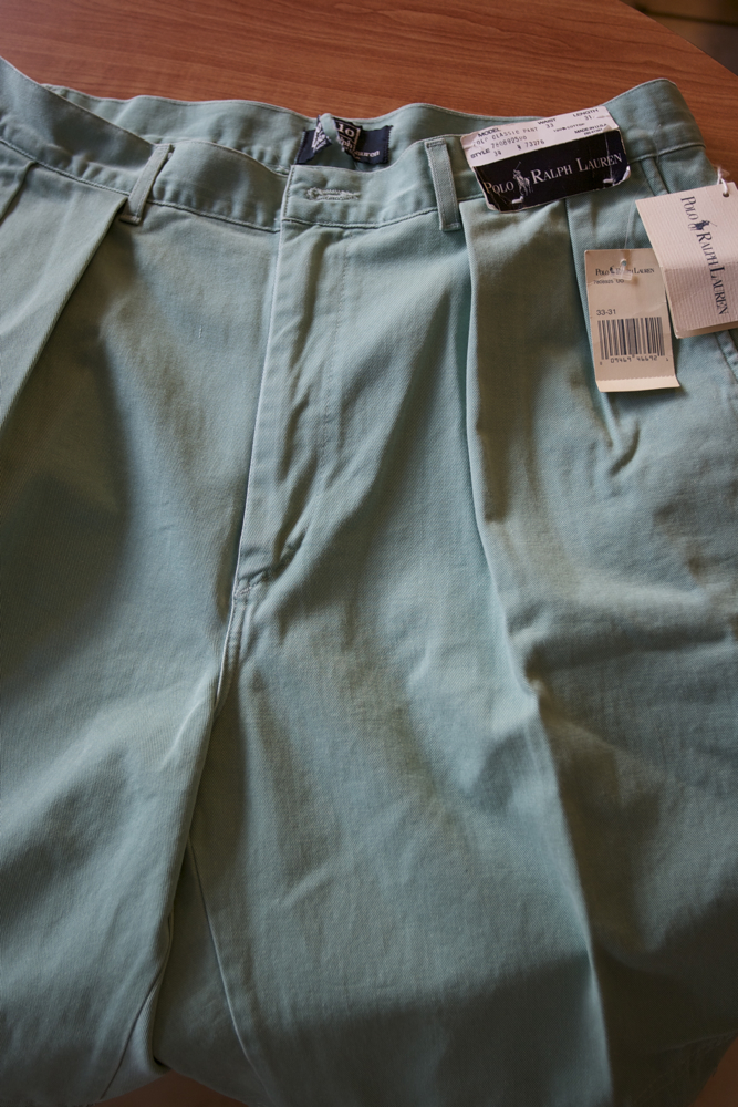 そうそれは、僕がまだハワイ島コナに住んでいた頃であった。町中にROSSがあり、仕事帰りに「お宝」を物色していた。ちょうど、10年ちょっと前の話である。そこでラルフローレンの、チノパンを発見した。当時リテールプライスは、60〜70ドルであっただろうか。ROSSだから20ドルくらいなら、「あり」だなと思った。プライスを見た、57ドル。意外に高い。ちょっと待て。タグを見ると、0.57ドル。ということは57セント。ということは、為替100円としても57円。57円で今何が買える?頭はその時に、混乱した。家に持って帰ってみると、何とメードインUSA。たまげたのは云うまでもない。そしてこんな色の長いチノパンははかないと、昨年12月店の隣の修理屋で、短パンにした。かかった費用は12ドル。店頭では毎日短パンなので、最高の出来に満足しているのである。11年寝かせておき、短パンに変わりしめて12ドル57セント。まずまずではないか………….。ちなみに今のホノルルのROSSに、この手のお宝はない。と、思う。あしからず。