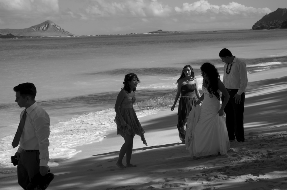 最近日本に帰ると、何か違和感を感じるようになった。何かはわからない。わかり易い事例も特にない。写真は僕の好きなワイマナロビーチに行った時、結婚式をあげた当事者と兄弟が、タキシードとウェディングドレスをきたまま海に入っていた。タキシードとウェディングドレスをこの後どうするかなんてどうでもいい。そんなことどうにでもなるさみたいな雰囲気。実に楽しそうで僕はそれを見ていて、愉快な気分になった。あ、思い出した。底抜けの愉快な気分になれることが、帰国の時にないのと辺りを見回すと見当たらないのである。この若者たち、おそらく20歳前後。見ていて僕がアメリカに来た頃、良く使っていた「TAKE IT EASY」を思い出した。今は日本もアメリカも「I don,t care」が多すぎる、そんな世の中になってきているような気がしてならない。