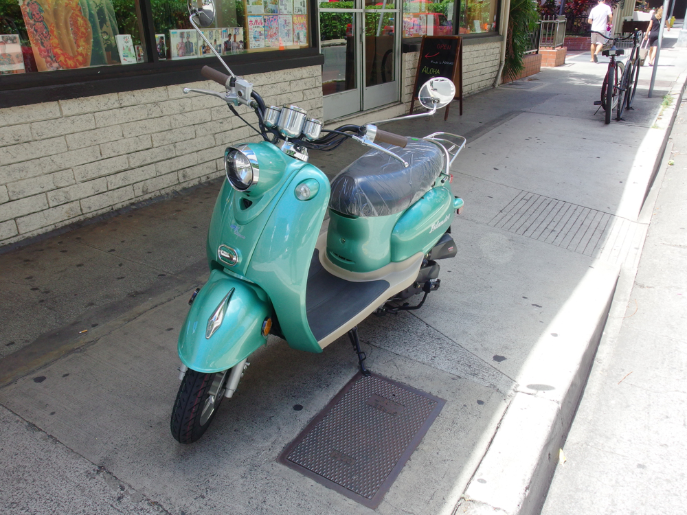 先週ちと訳あって、スクーターを買った。昔で云う原付バイクである。高校の時に、「パッソーラ」を買った。原付バイクは、それ以来である。買った理由の一つが、車では異常に時間がかかって仕方ない、というのもある。特に金曜の、帰りのラッシュは酷い。こんなことをしていたら、全く仕事にならん。また毎日店があるので、基本的にはベイリーズの在庫確認か、郵便局、銀行、縫製工場に行くだけである。それならば渋滞も関係ないし、ちょいと買ってみるかということになった。乗ってみたらまたこれが、中々良いのである。高校当時はまだ、原付きはヘルメット着用の義務がなかった。だから最寄り駅まで、「ノーヘル」で行っていたのである。もちろんハワイも、ヘルメット無しでOK。あった方が良いのは、云うまでもない。これを手に入れたことで、僕の極楽の暮らしが更に増すことは間違いない。風を着るアロハシャツを纏いながら、風を感じるスクーターに乗る。原チャリよりサウンドがよかろうもん。