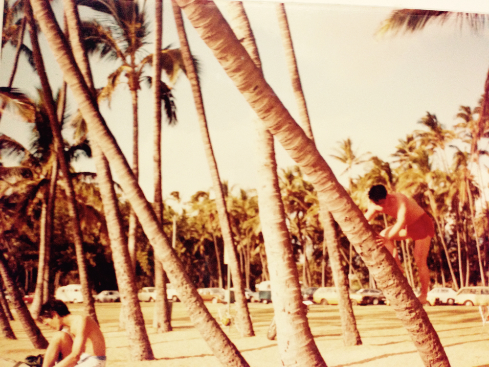 これは1983年の話である。僕が1番最初にただ単純に叔母に連れて来られた、ハワイ旅行でのことである。もちろん初ハワイで、滞在中舞い上がっていたのは、いうまでもない。見るもの全て新鮮で、うきうきワクワクであった。その頃はまだ日本からの観光客もまばらで、それほど多く感じられるどころか、ビーチなどでもあまり見かけることはなかった。そんな中、ニューオータニカイマナビーチで、(お、日本人だ)と思って何気なく目を向けると、何と矢沢永吉さんである。ちなみにそれがこの写真。木を登っているのが、高校生の頃の自分である。そして左に写っているのが、彼である。記憶によるとその当時、山中湖の別荘が荒らされて逃避していた頃ではなかったか?1983年頃は、まだそんな時代であった。この写真の景色の中、今僕は朝ランニングしている。不思議なものである。