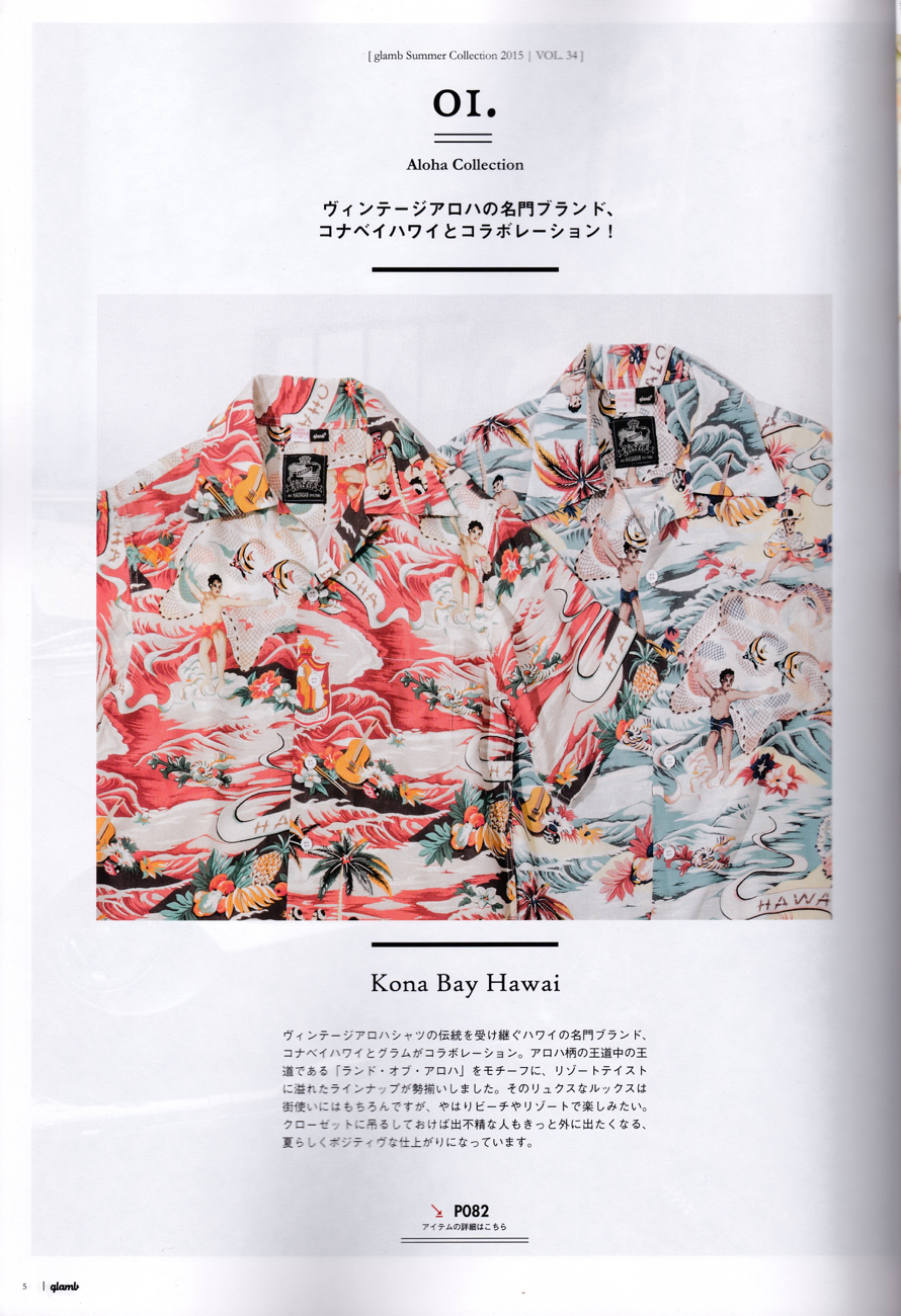 昨年3月に若者5人が、ハワイのストアを訪れた。聞くと、友人の結婚式の参列とのこと。その中の一人が、僕のアロハシャツをすでに手に入れていて、日本からハワイにストアがあるか、探してきたとのこと。色々話を聞いているうちに、洋服のメーカーさん達とわかる。その日は、「可能であれば別注やりましょうね」と別れた。ちょうどその後、すぐ日本に行く機会があり、そのメーカーさんのストアと事務所を訪問した。それがグラムである。そして僕が何度かやっている、ランドオブアロハを別注でやりたいと聞く。更にグラムオリジナルの色を付けたいと。僕はこういうゼロからのスタートが好きなもので、即OKの回答をした。先月来日の際、一瞬時間が空いた時に、またグラムのオフィースにお邪魔した。豪華版のカタログが、出来上がっていた。実にいい雰囲気なのである。今別注アロハシャツで、一つの柄を売り切ることの出来るメーカーは少ない。日本は天候に左右されるし、若者の行動も流動的だ。それでもあえて、今回はコラボで作った。凛とする姿勢が、この会社にはあるのである。ランドオブアロハの赤とブルーは、特に「昔」を感じさせてくれる色合いである。完売してくれることを祈る。毎年出来たらいいなぁ〜。http://www.glamb.com/feature/2015/