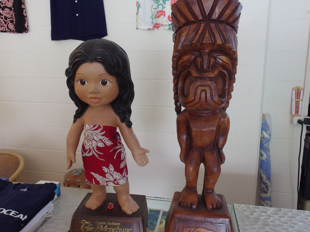 何かティキは、神々しい感じがする。昔ハワイ島に住んでいた頃、「プウホヌア・オ・ホナウナウ」に行くと、相当数のティキが無差別に置いてある。逃れ後とも呼ばれたこの場所に、多く存在するのは何か意味があるのであろう。そして本当に久しぶりに、写真のティキを手に入れた。もちろん販売の為である。守護神としては、メネフネも含めかなり多くなってしまった。このティキは、年々入手が困難になる。おそらく1970年代、ユナイテッドエアラインの、ハワイ路線カウンターに、ハワイの雰囲気を盛り上げる為に、ディスプレイされていたというのが、かなり信憑性の高い話である。今はコレクターズアイテムとして残っている。御利益ありそうだな〜。