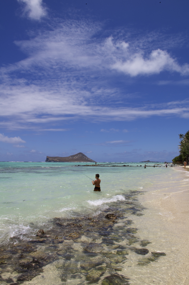 先週フェースブックで、唐突に海の写真をアップした。3年前の秋、店を開けたからには「365日」営業するを、目標にやってきた。お陰様で、1日も店を閉めることなくやっている。日本で仕事に行く時、高熱を発して寝込んだ1日を除いて、自分の為の休みをいただいていなかった。今月パートさんにお願いして、店に顔を出さない完全オフを少しだけいただいた。勝手なポリシーでやっていた訳であるが、休日を取ってみたらどうだろう。ドライブしている景色の移り変わり、プルメリアの匂い。ナンテコッタイだ。こんなに自然豊かな所に暮らしているのに、ほぼ家と店の通勤であった。もちろんこれからも1ヶ月の長期休暇をいただこうとは思わないが、許すのであれば2週間に1度は、頭を切り替えようと思う。ちなみにまた仕事であるが、10月8日から10月18日はハワイを不在にする。僕に会いに来るなどという「酔狂」な方はあまりいないと思うが、一応インフォメーションしておきたい。それにしてもラニカイよりはるか手前、ワイマナロビーチよりちょっと手前、少年が魚釣りするのどかな景色が、僕の心を豊かにしてくれた。