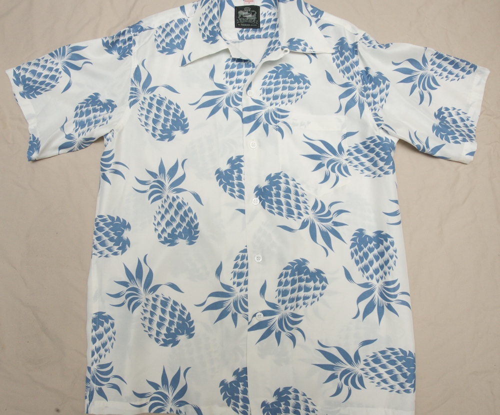 先週めちゃくちゃ嬉しいことがあった。ベーリーズのオーナー、デービッドベーリーから電話があった。「ホール・アンド・オーツのダリル・ホールが、お前のアロハシャツを、6枚買って行ったぞ」と。小林克也さんが、ブレークするきっかけを作った、ベストヒットUSAが、高視聴率を叩き出してるいる頃、大流行したアーティストである。先々週ホノルルに、コンサートで来ていた。よく考えるとサザンの桑田さん、YMOの細野さん、ドゥービー・ブラザーズのケニー・ロギンス、ホール・アンド・オーツのダリル・ホール、マルーンファイブのアダム・レヴィーン。自分の大好きなアーティストの面々に、自分の作ったシャツが着てもらえるとは、嬉しさを通り越して感動ですらある。ちなみダリル・ホールが購入したのは、前回紹介したランドオブアロハ2枚、その他諸々。ミック・ジャガーが、オリジナルヴィンテージを着ていたと書いた。何故かアーティストの心をくすぐる、デザインなのであろう。まあいつもいつも縁起がいいわいなぁ〜。そしてパイナップルの新作。かなり清涼感のある配色となった。夏が楽しみである。