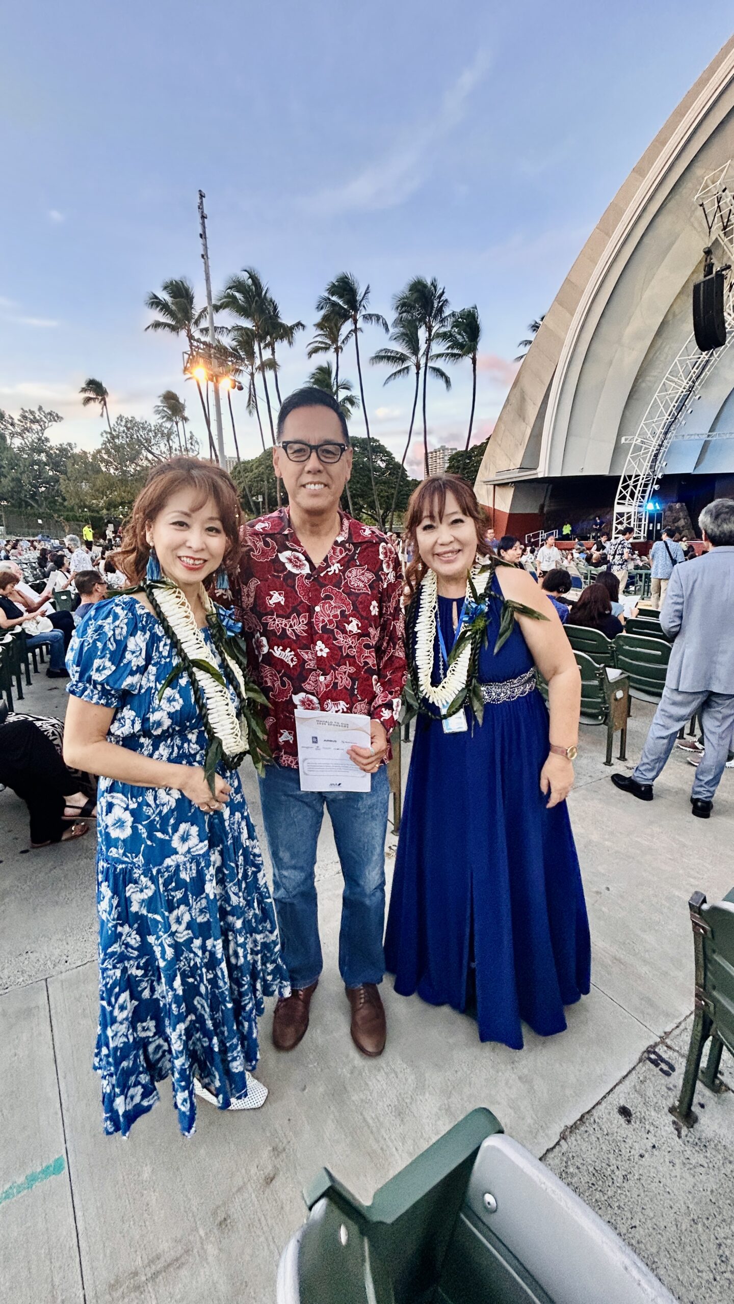 On Saturday, I went to the Waikiki Shell to see Nobuyuki Tsujii’s concert. While I was there, Robin, the vice president of KZOO radio who was hosting the concert, and announcer Norie spotted me (lol). But seriously, Mr. Tsujii’s piano playing is incredible. Just seeing him perform La Campanella was completely satisfying. Violinist Fumiaki Miura, trumpeter Shutaro Matsui, pianist Kento Tsubosaka, and Hawaiian singer Raiatea Helm. Everyone gave a first-class performance. I definitely want to go again next year.
